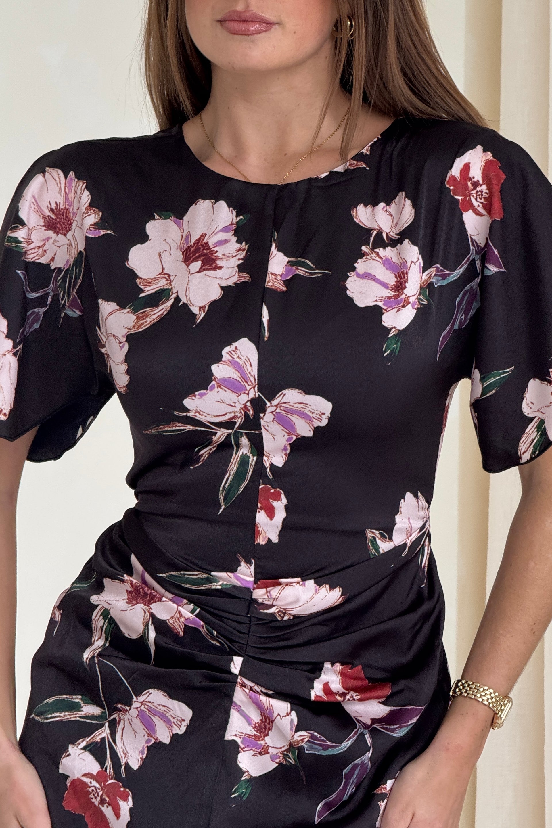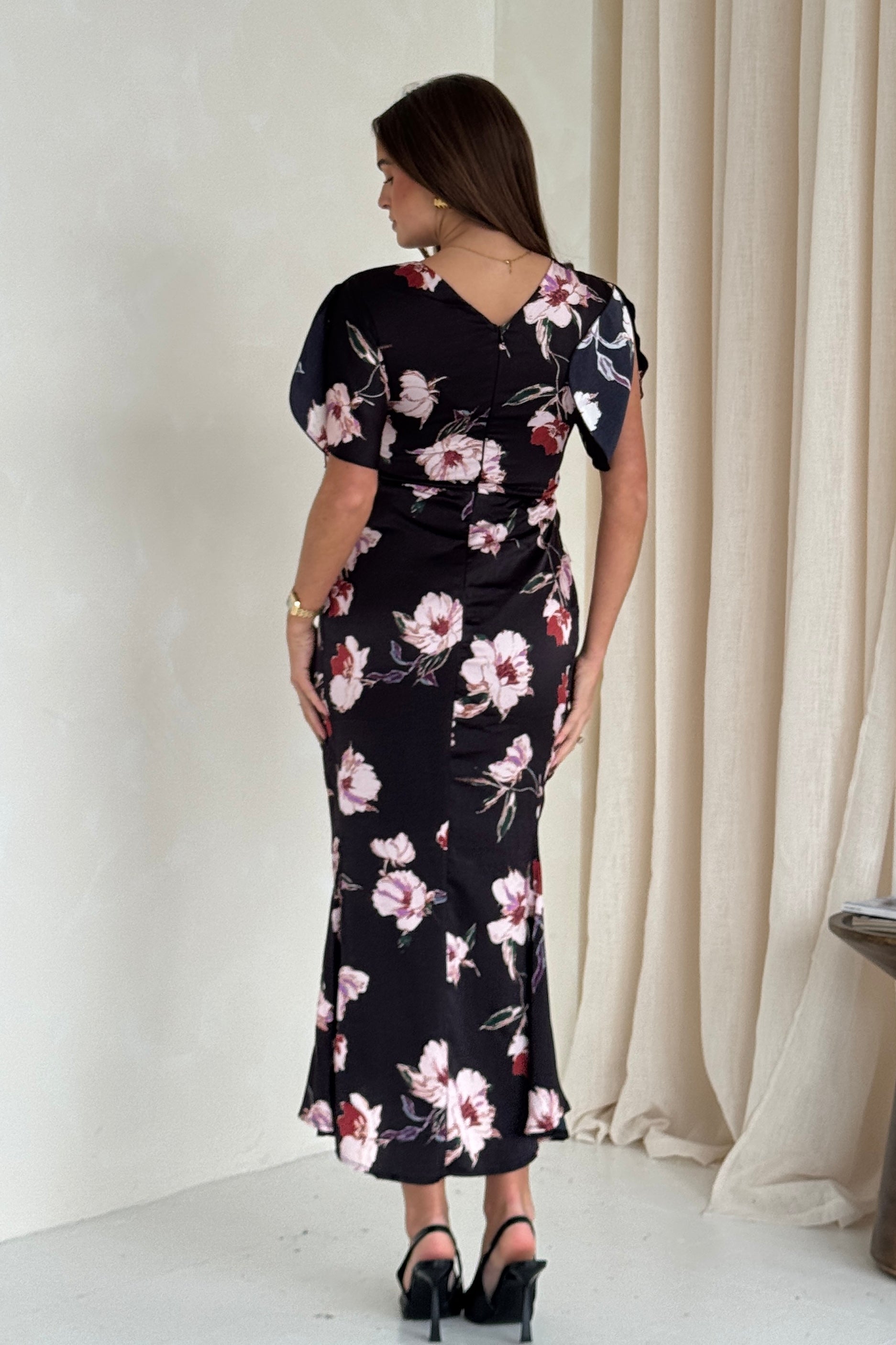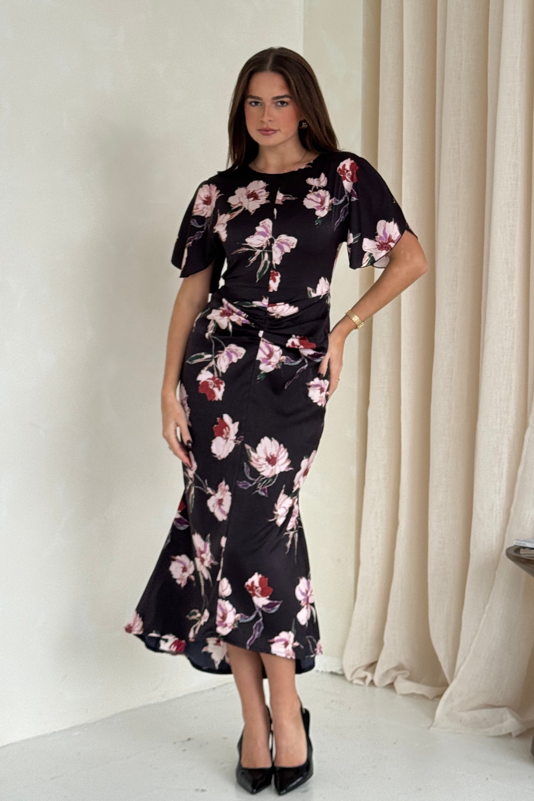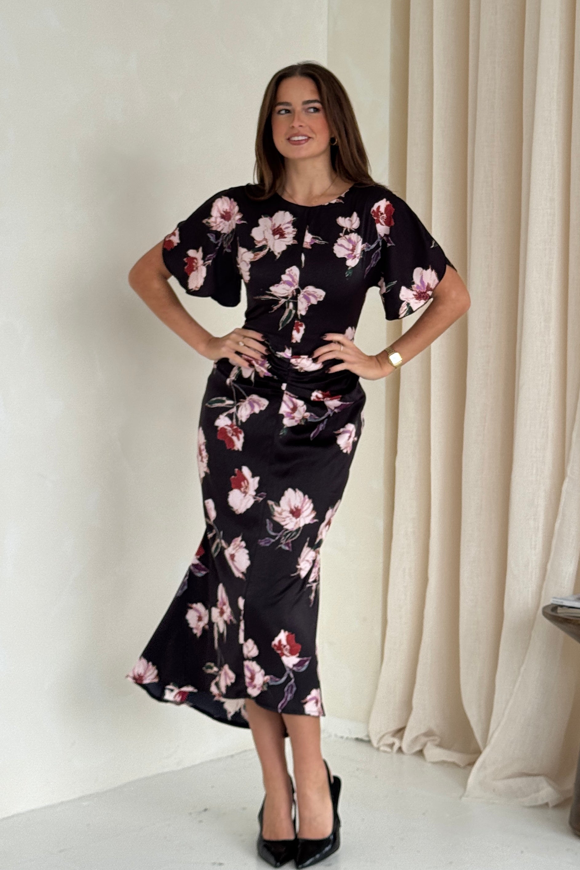 Cleo Ruched Detail Midi Dress In Oriental Floral – Girl In Mind