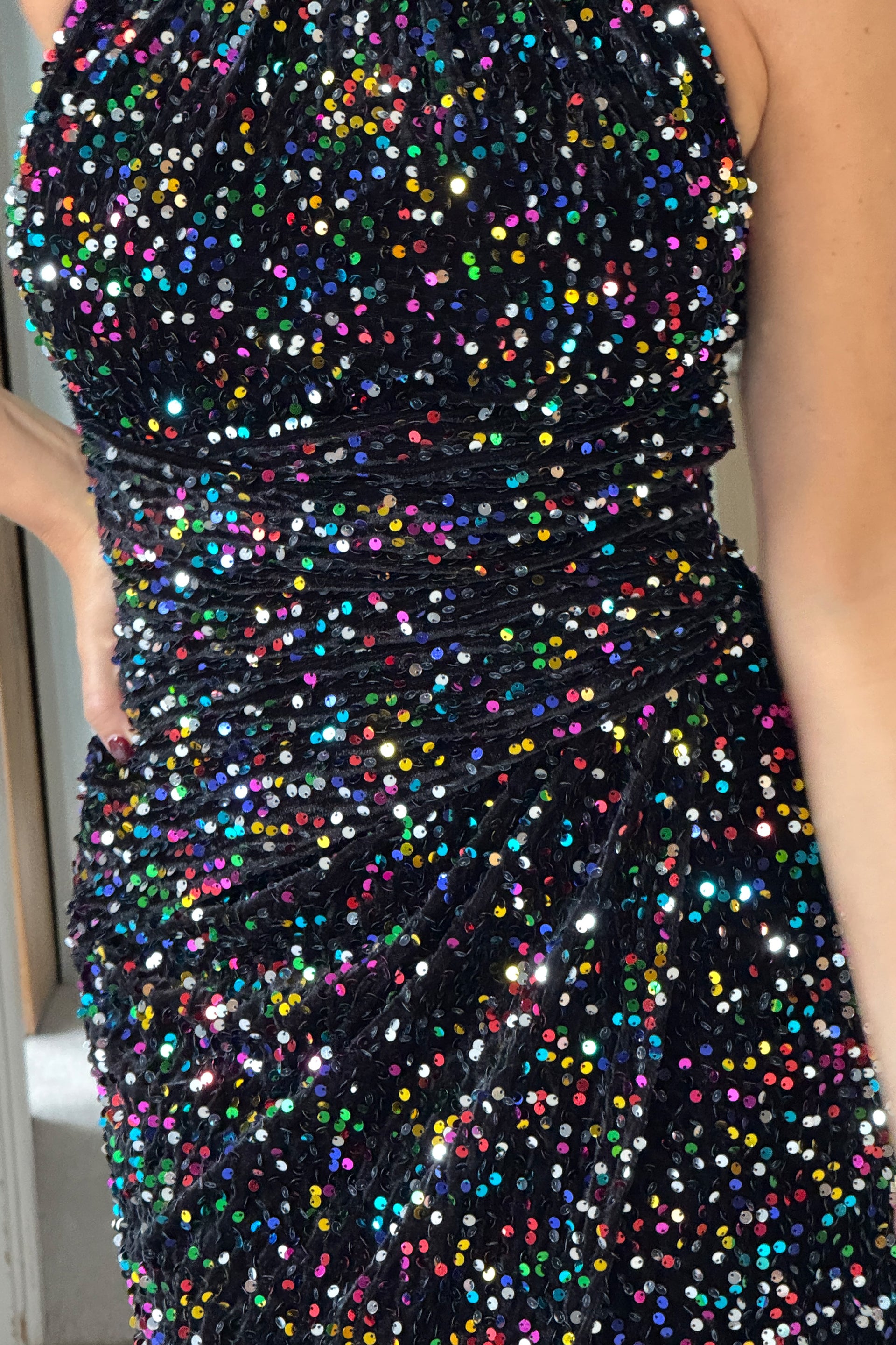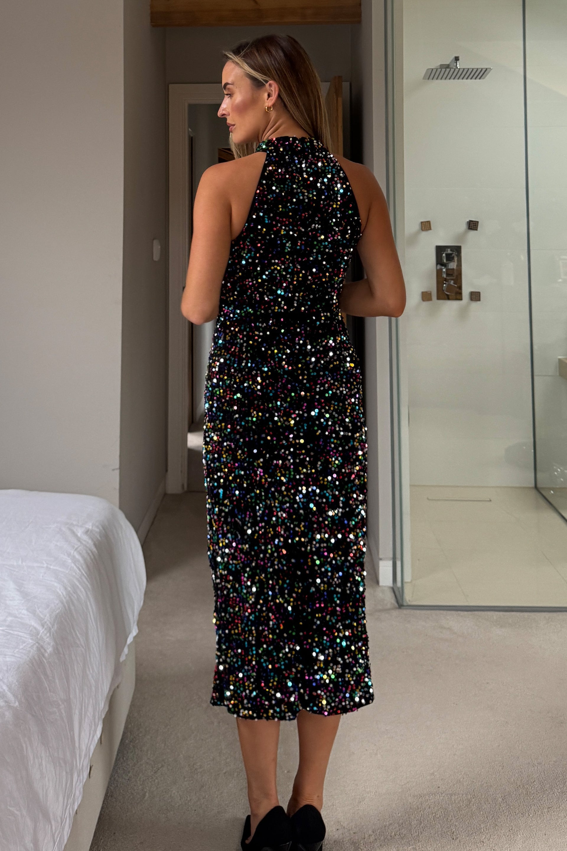 Alessia Halterneck Wrap Detail Midi Dress Multi Sequin