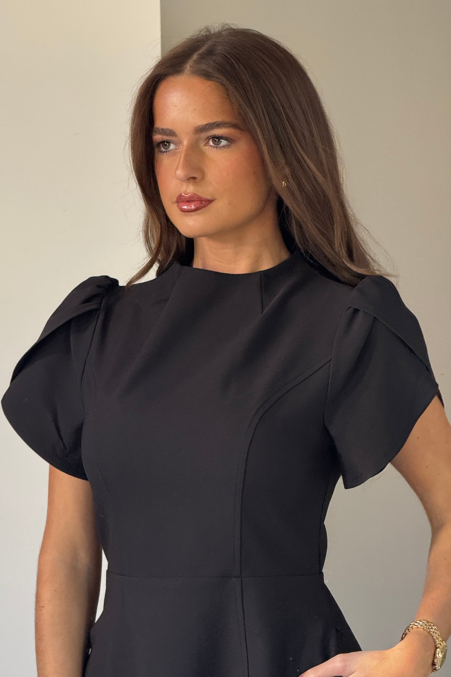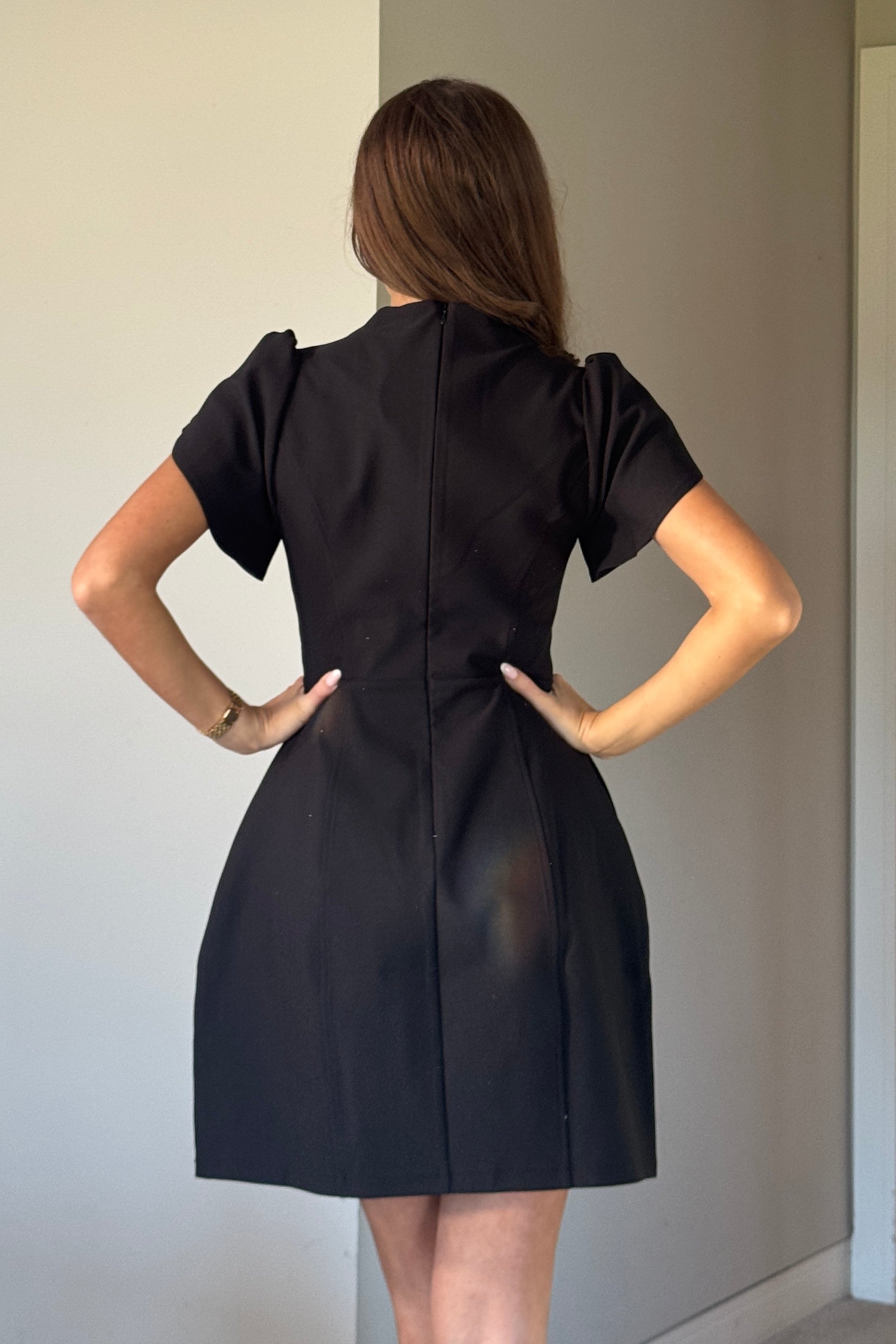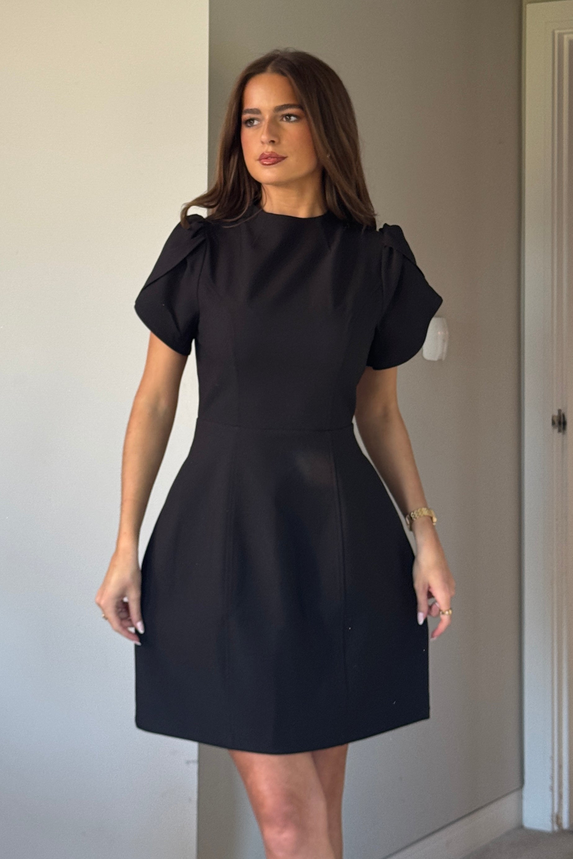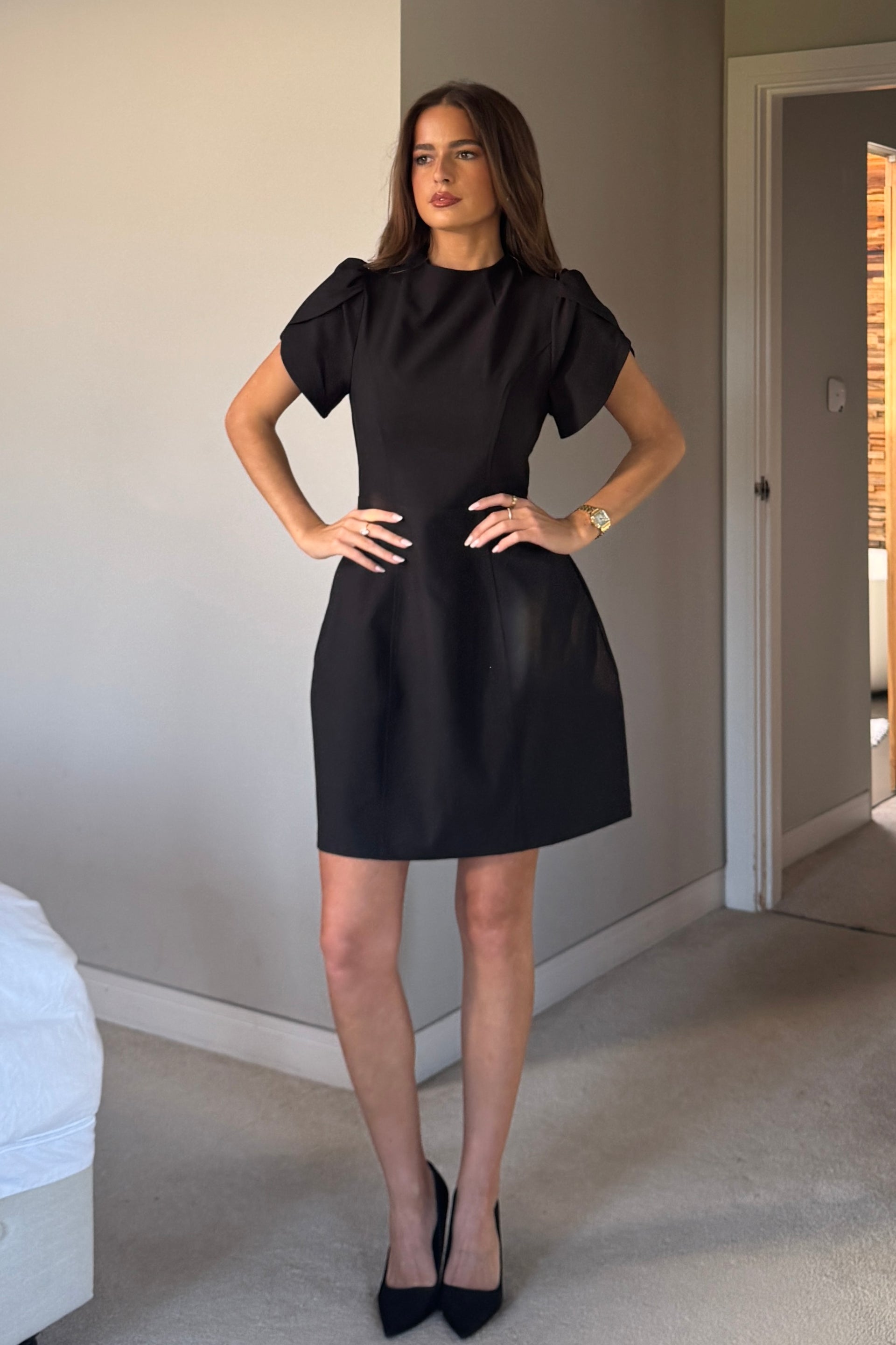 Ami Tulip Sleeve High Neck Mini Dress Black