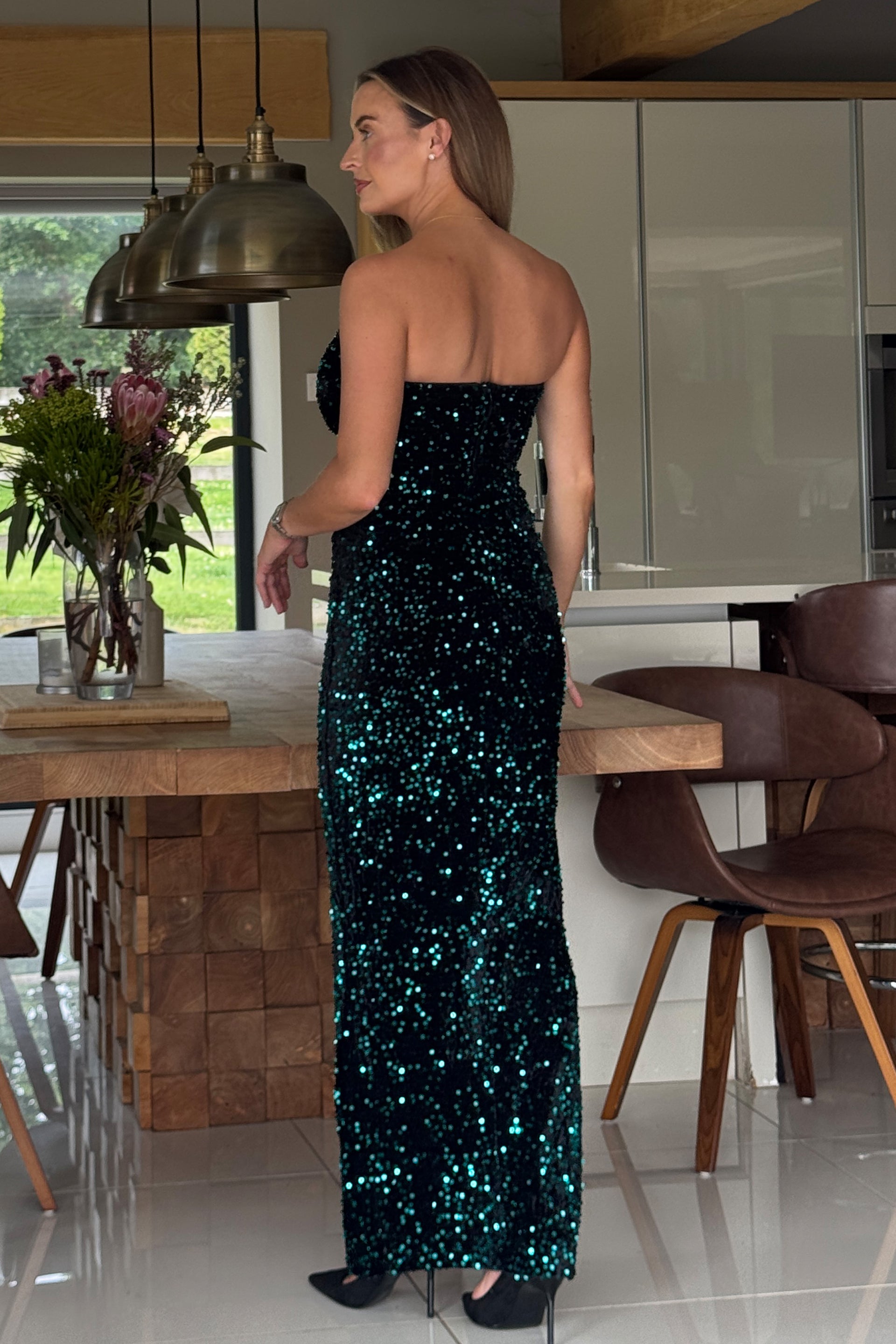 Ava Iridescent Velvet Sequin Occasion Maxi Dress