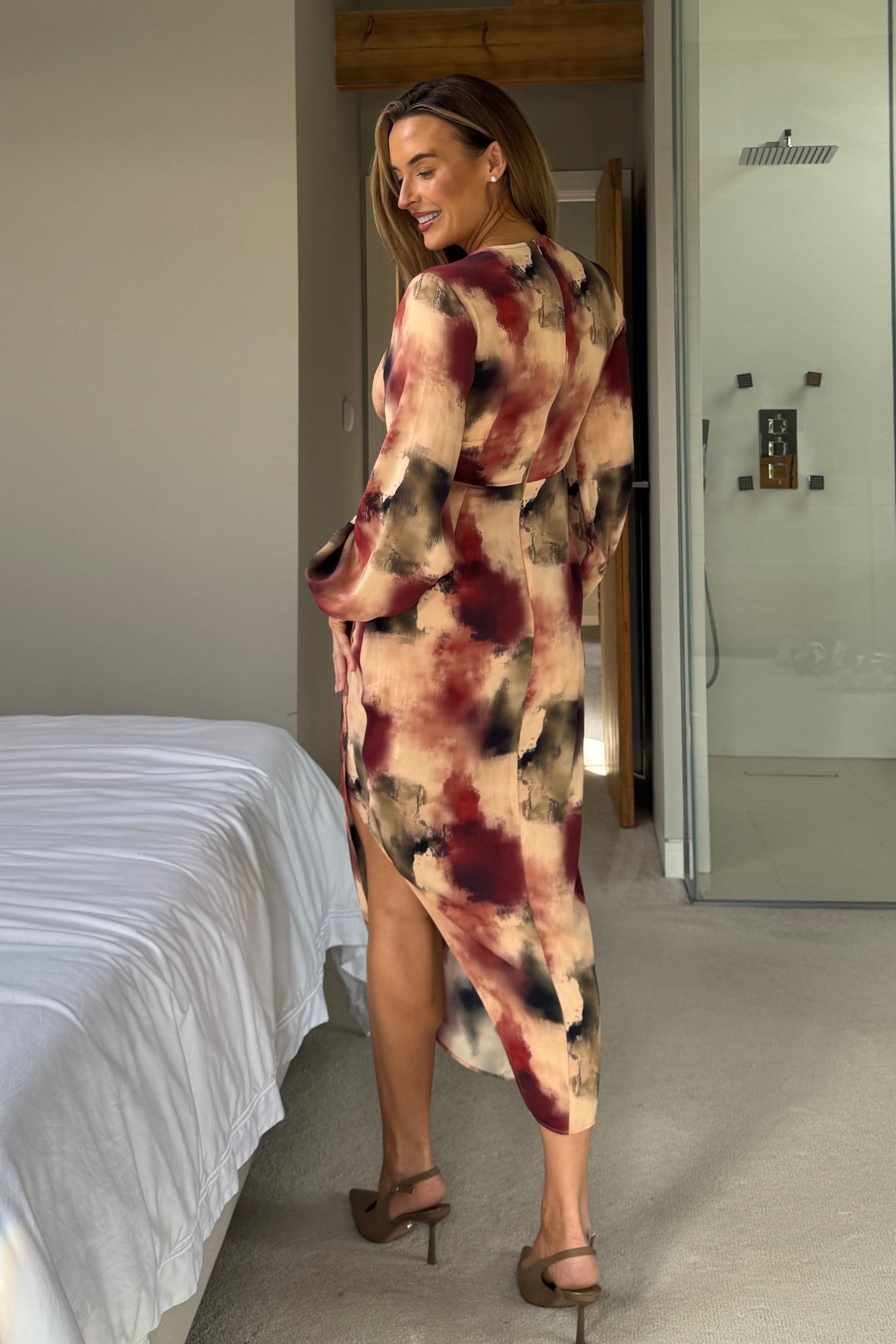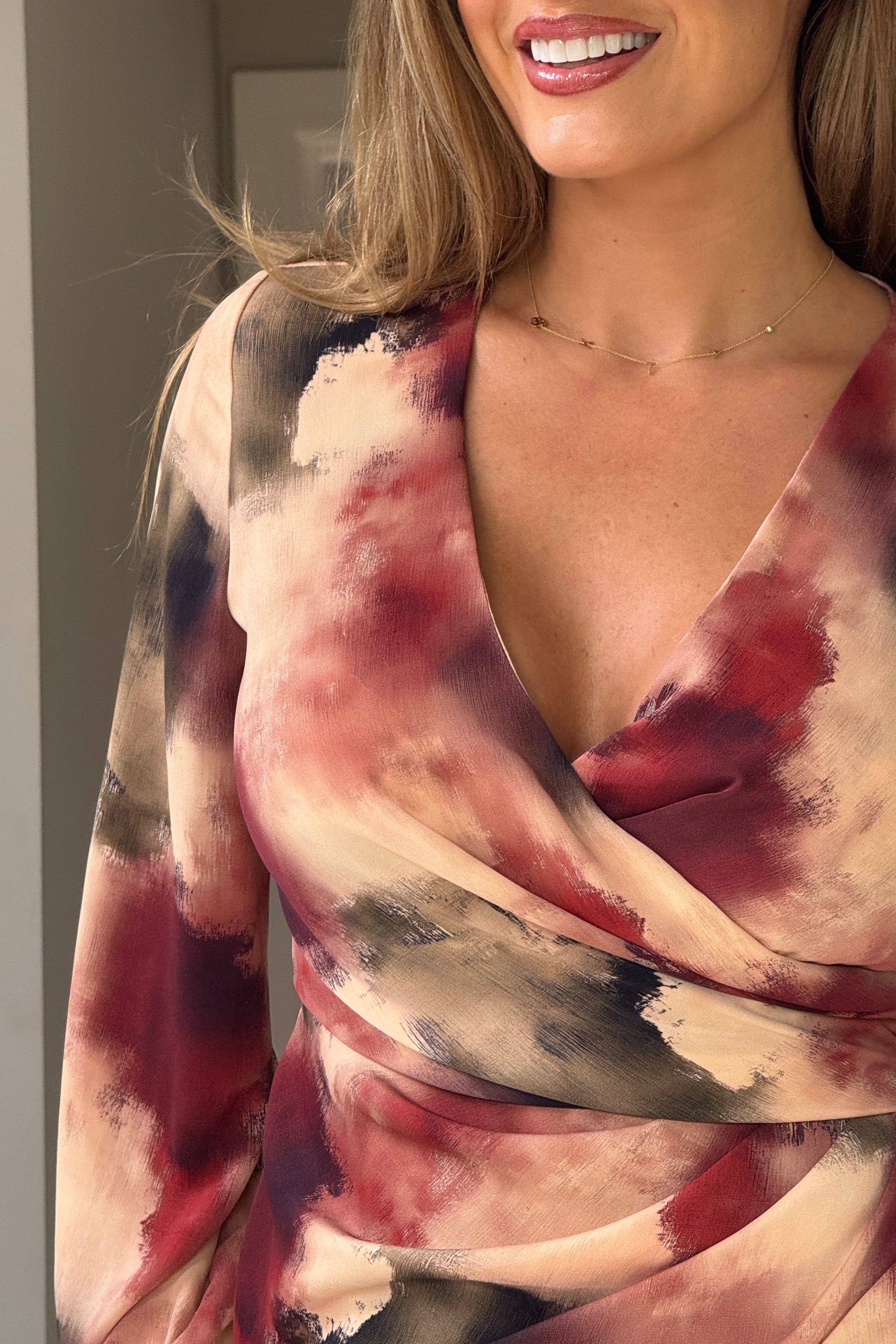 Elsa Long Sleeve Wrap Asymmetric Brown Print